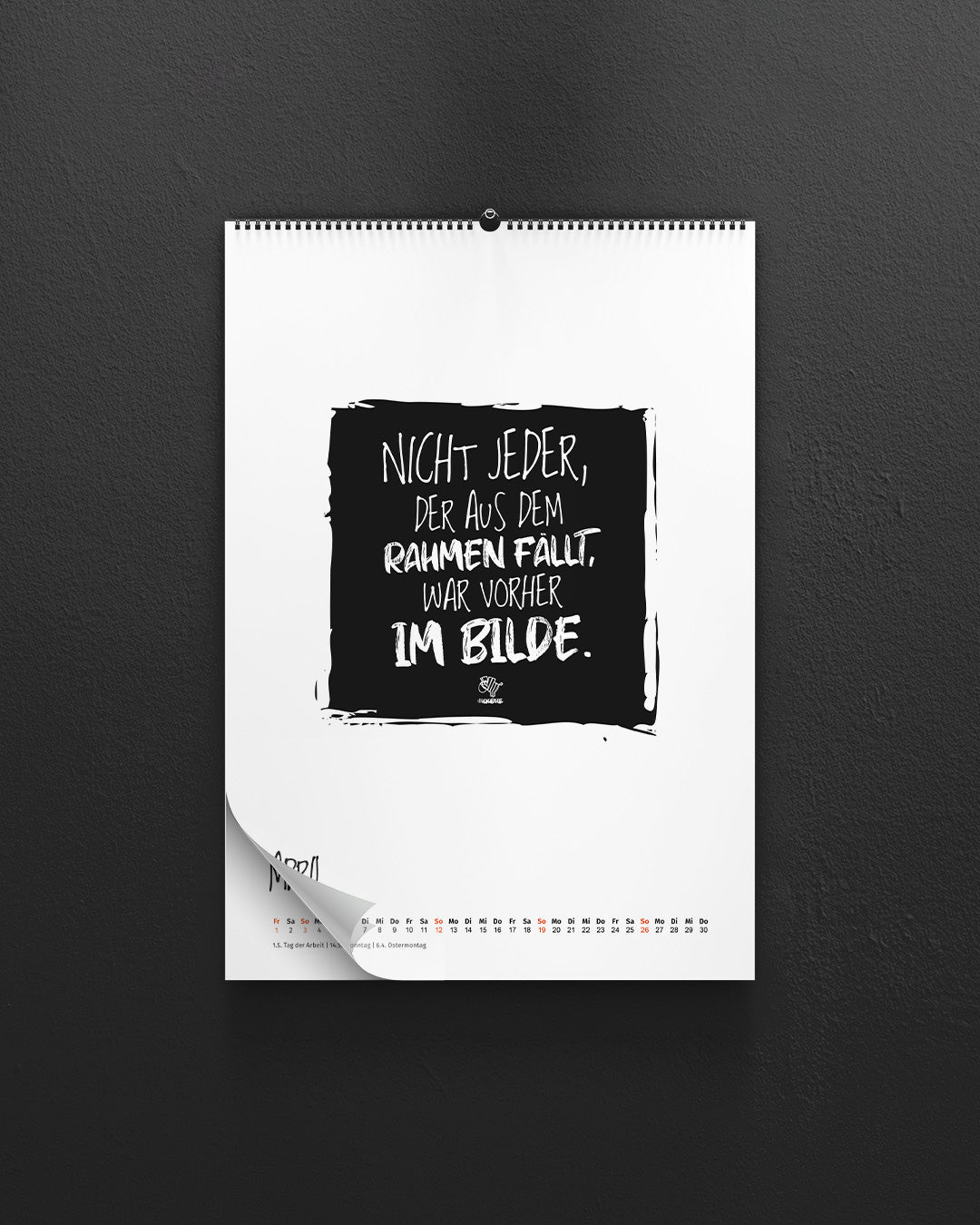 Monatskalender mit 12 lustigen und sinnigen Sprüchen im A4 Format mit weißer Spiralbindung (210 x 297).